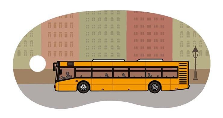 乗り物の機能を司るメカニカルな部分は省略せず、タイヤやアームと乗り物本体のバランスなど、実際の大きさの比率にも忠実になるように一つひとつ注意を払って描かれたイラスト。
